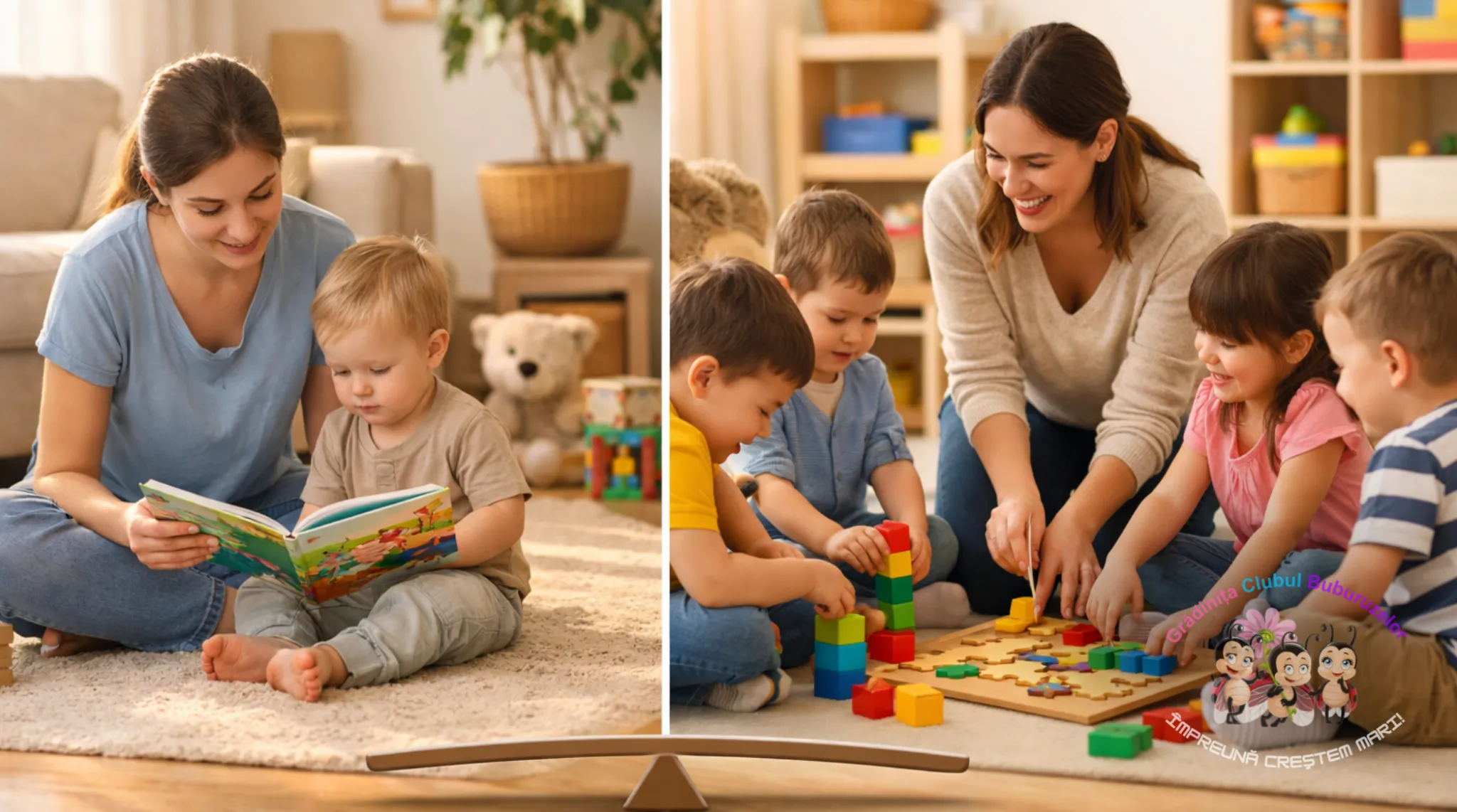 Bona este perfectă pentru copilul foarte mic care are nevoie de atenție constantă și rutină personalizată. Dar după 2,5-3 ani, grădinița devine de neînlocuit pentru dezvoltarea lui socială și emoțională. Nu e despre „ce e mai bun în teorie” – e despre ce are nevoie copilul TĂU la vârsta lui și cu temperamentul pe care el îl are.